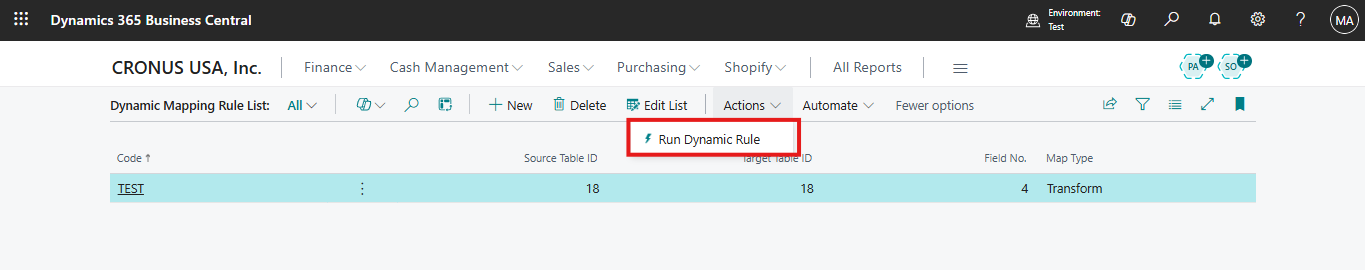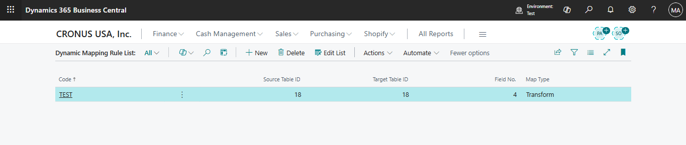 Step: Create a mapping rule for the Customer table (Code: TEST) to apply transformations on field Name.