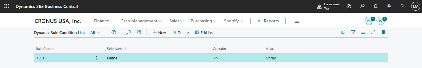 - Rule Code: TEST