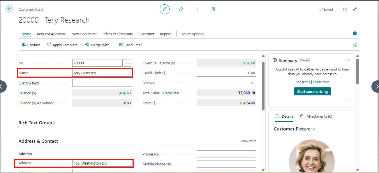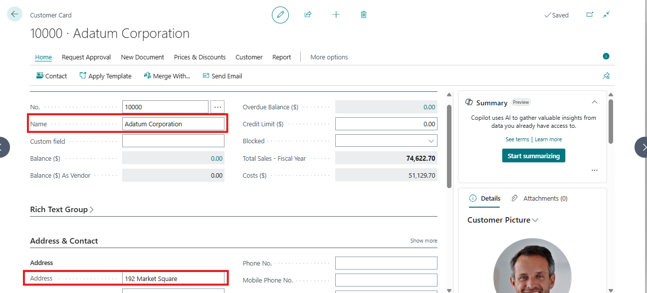 - Screenshot 3: Customer 10000 – Adatum Corporation